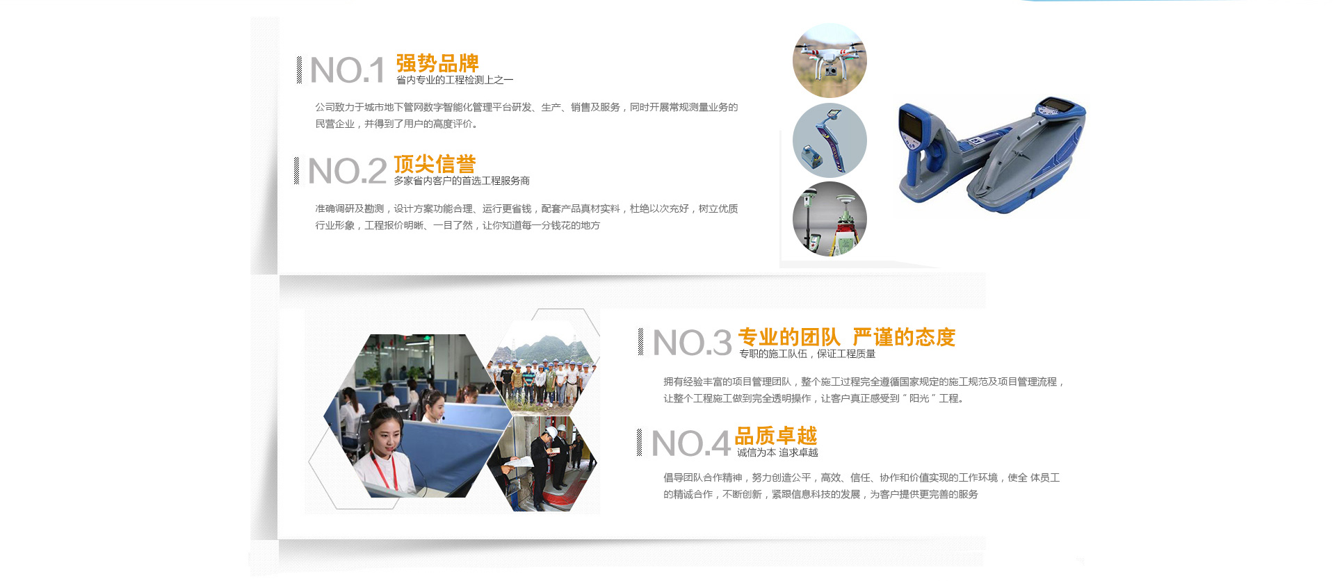 貴州地理空間科技有限公司成立于2015年5月,致力于城市地下管網探測、檢測、維修施工和測繪,管網探測儀器設備及管網數字化信息處理智能平臺等相關軟件產品的研發、生產、銷售及服務的民營企業。 [查看更多+]